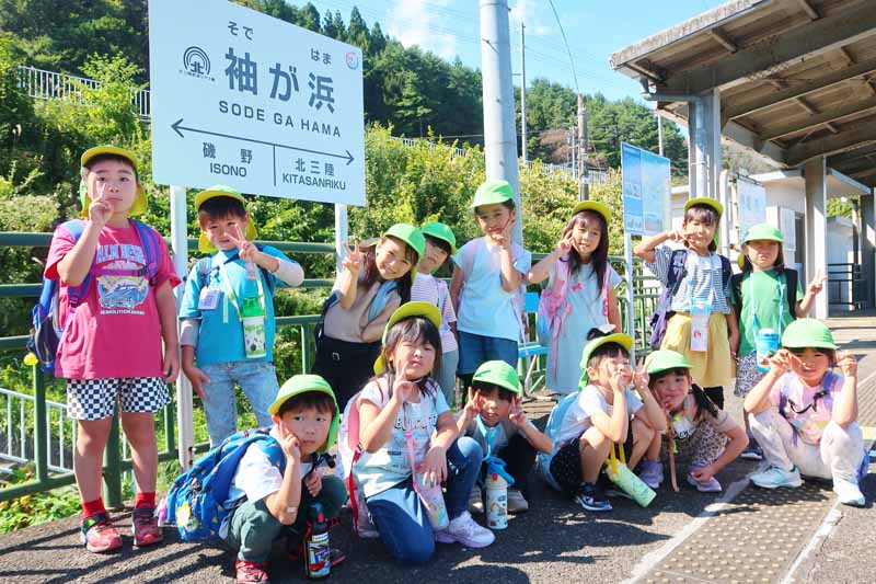 お弁当の時間には、お友だちとお弁当を見せ合いながらうれしそうにモリモリと食べて、びっくりするほどの食欲に手作りお弁当の力を改めて感じました。食後にのんちゃんパークの遊具で遊んでいると、「あっ!三鉄だ!」と線路を走る列車を見つけ、元気いっぱいに手を振って見送りました。何度も「また来たいね!」と笑顔で話すたんぽぽさんたちでした。