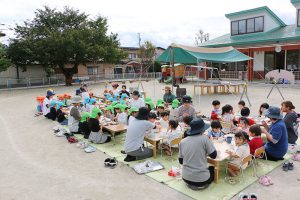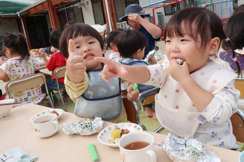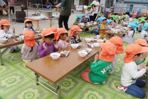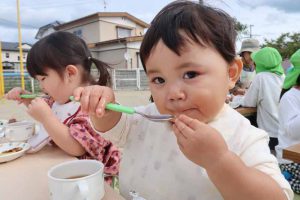 昼食タイムは、穏やかな秋日和の下でゆったりと過ごし、どの子もおかわりをしながら“食欲の秋”を満喫することができました。