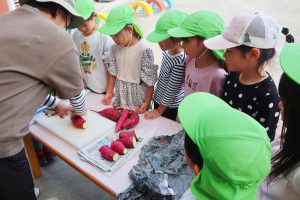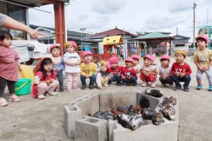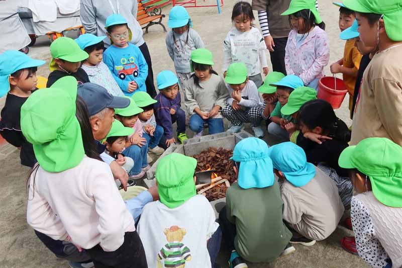 「どうなるのかな?」と興味津々で、お芋が焼けていく様子をじっと見守る姿が見られました。