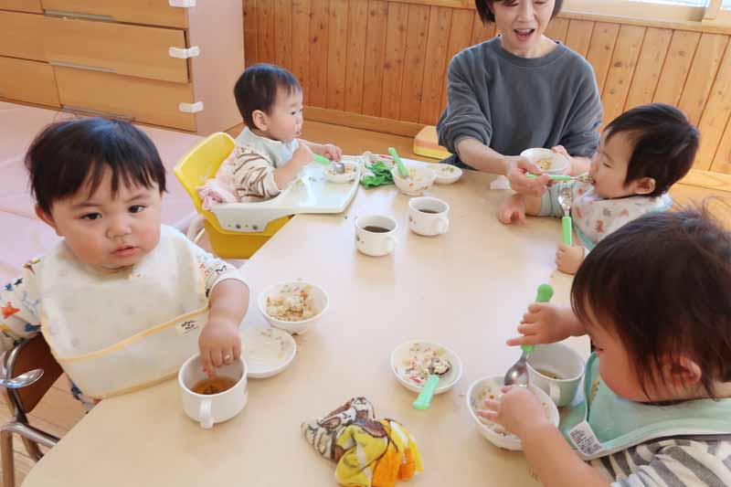 もも組の先生からは、「2人とも食べることが大好きで、手づかみ食べも上手です。また、歌やダンスが好きで、リズムに合わせて体をゆらゆら揺らす姿がとてもかわいいですよ」と紹介がありました。