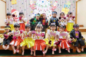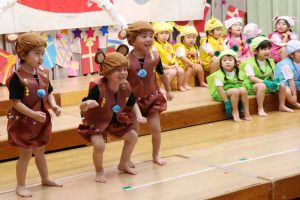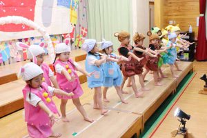 発表会の練習では、「やってみよう」とする小さな意欲を子ども同士で認め合い、友だちとの心地よい刺激の中で、表現力がぐんぐん伸びていきました。