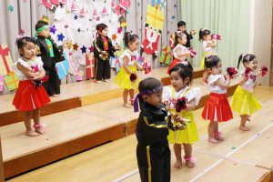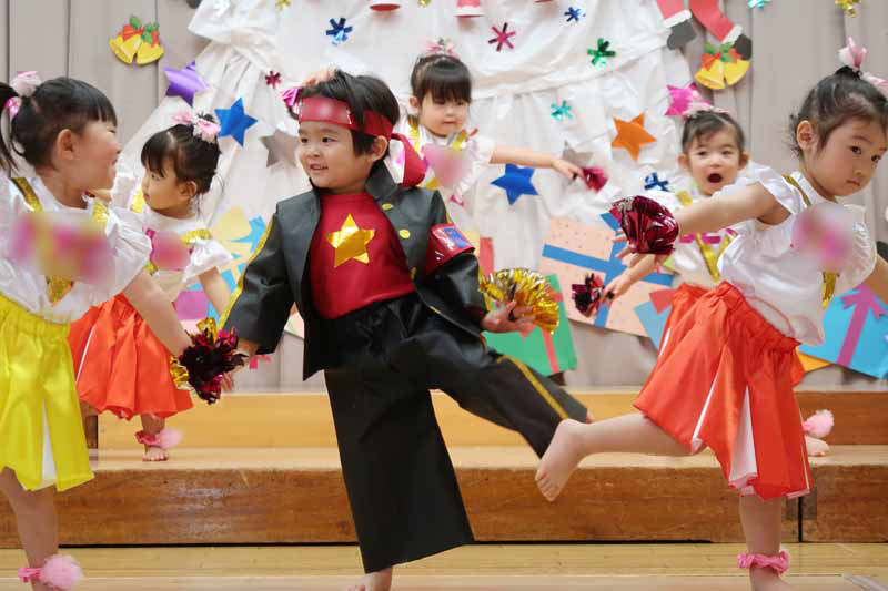 発表会の練習では、「やってみよう」とする小さな意欲を子ども同士で認め合い、友だちとの心地よい刺激の中で、表現力がぐんぐん伸びていきました。