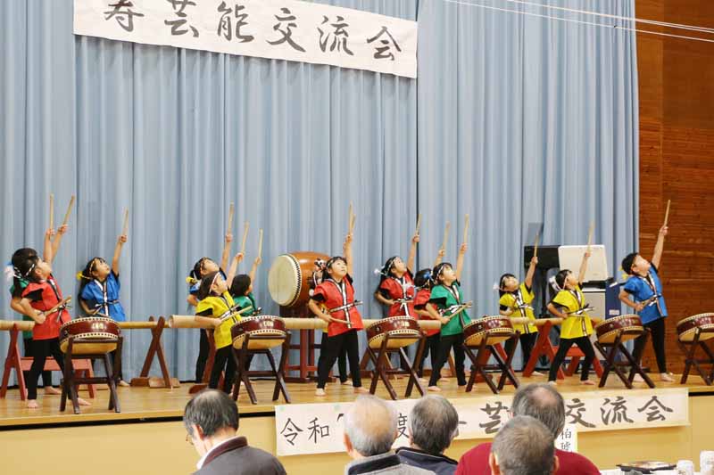 12月9日(火)に市民センターで町内老人クラブによる「寿芸能交流会」が行われ、たんぽぽさんが参加しました。合唱と和太鼓・竹太鼓を元気いっぱいに披露し、会場の皆さんからたくさんの拍手を頂きました。子どもたちもとても嬉しそうでした。