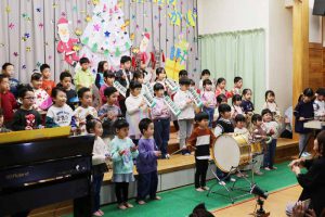 ちゅうりっぷ組・すみれ組・たんぽぽ組さんによる合唱と合奏からスタートし、会場はあたたかな雰囲気に包まれました。