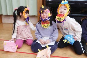 たんぽぽさんは一人ずつ発表し、『おこりんぼ鬼(4名)』『くいしんぼ鬼(2名)』『泣き虫鬼(7名)』『ゲーム鬼(1名)』と、自分の気持ちをしっかりと言葉で伝えていて感心しました。