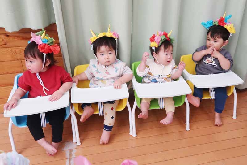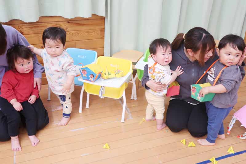 後半になると、もも組さんも少しずつ慣れてきて、頭をなでてもらうなど、「鬼さん、怖くない…」と感じられるような、ほほえましいやりとりも見られました。