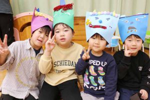 たんぽぽさんは一人ずつ発表し、『おこりんぼ鬼(4名)』『くいしんぼ鬼(2名)』『泣き虫鬼(7名)』『ゲーム鬼(1名)』と、自分の気持ちをしっかりと言葉で伝えていて感心しました。