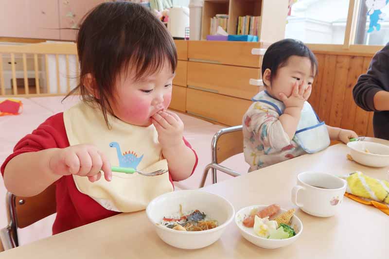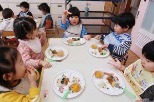 また、すみれさんから「ご飯に混じっている小さい豆はなあに?」という質問がありました。「雑穀米だよ」と伝えると、「知ってる!食べたことある!」といったやりとりがあり、食育で『雑穀米』に触れたことを思い出していました。