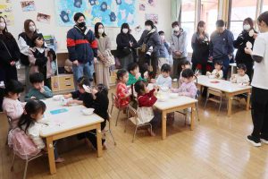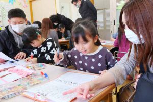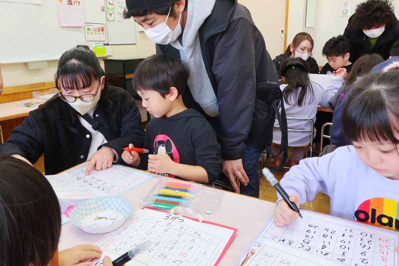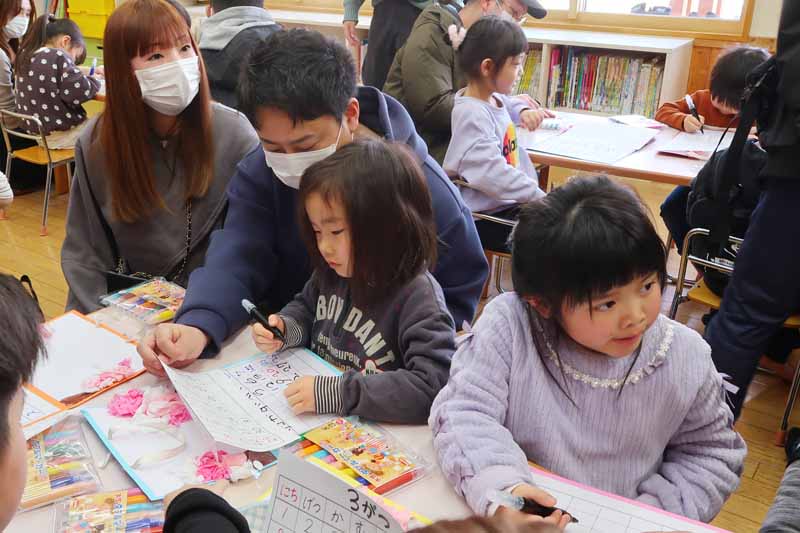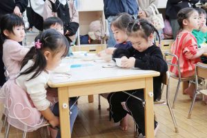 また、「これはどうするの?」という子どもたちからの問いかけに応えると、「ありがとう!」と返してくれる場面もあり、活動の中でのやり取りも、お家の方から微笑ましく見守ってもらい、穏やかな参観となりました。