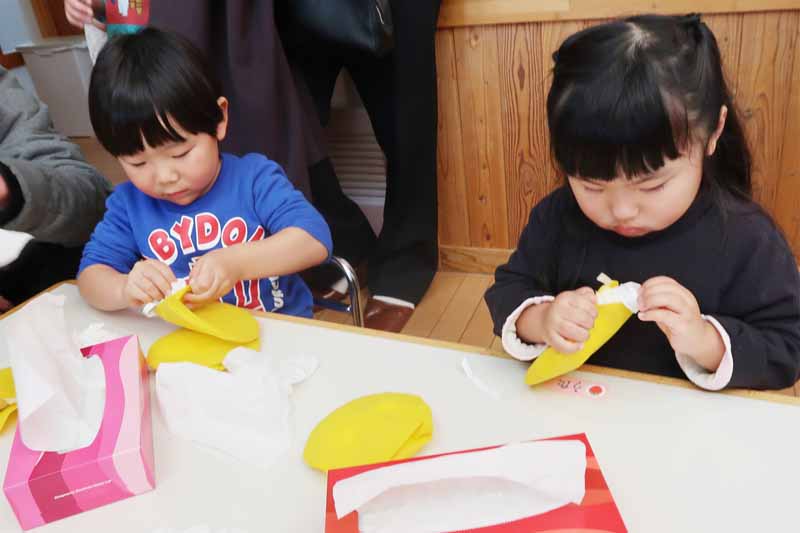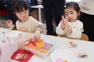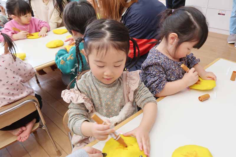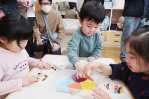 当日は、その経験を再現するかのように、楽しみながら製作遊びに取り組む姿が見られました。