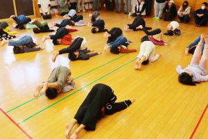 また、子どもたちはピアノの伴奏に耳を傾けながら集中して動き、『聴く力』や人とタイミングを合わせ『人と関わる力』を育んでいる様子、主体的に動いている姿を、リズム運動を通して観ていただくことができました。